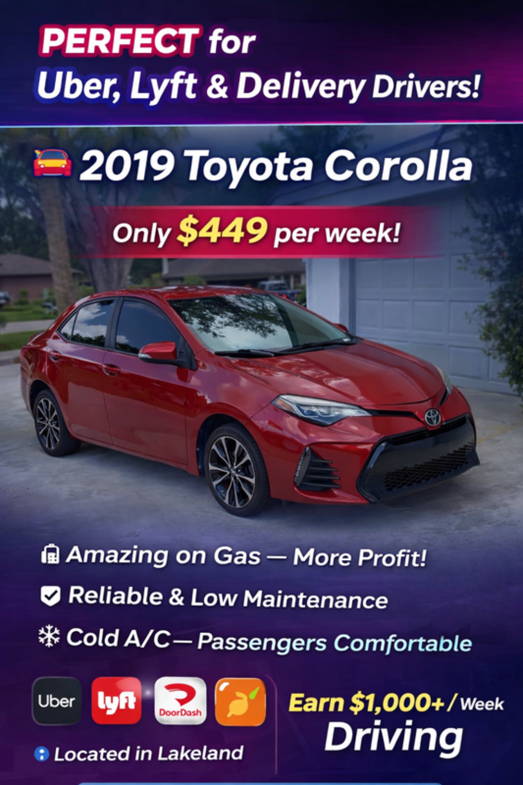 Drive with confidence and earn more — we empower Uber, Lyft, and delivery drivers across Central Florida with reliable, comfortable, and rideshare-approved vehicles.
